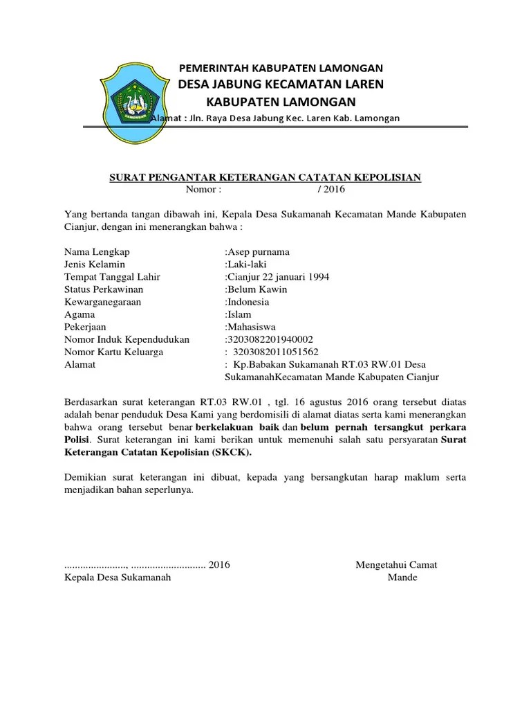 Pemerintah kabupaten garut kecamatan leuwigoong desa margacinta jln pangeureunan ds margacinta kec leuwigoong kab garut 44192 surat keterangan no. Daftarkan nik ktp penduduk ke pelayanan desa. Surat keterangan sebagai pengantar pembuatan skck || baru. Nama, tanda tangan dan stempel pejabat berwenang dari kepala desa setempat, . Bagi warga masyarakat desa tajun yang ingin mengurus skck tidak perlu lagi melampirkan surat pengantar atau keterangan dari perbekel.